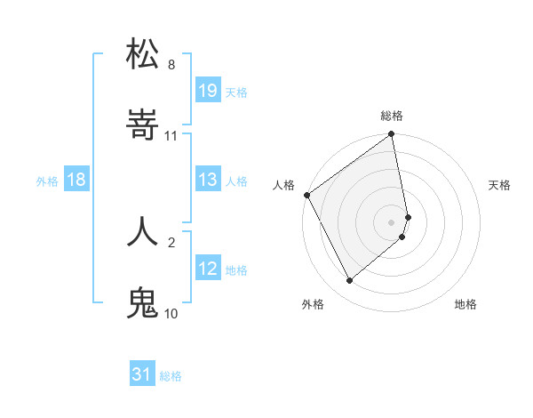 松嵜 人鬼さんの総格は31画の5点!