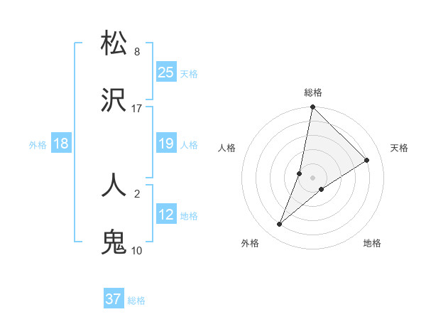 松沢 人鬼さんを姓名の画数から五運を鑑定