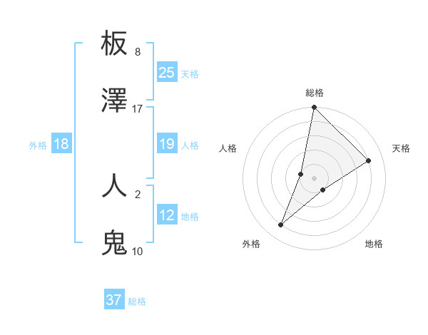 板澤 人鬼さんの総格は37画の5点!
