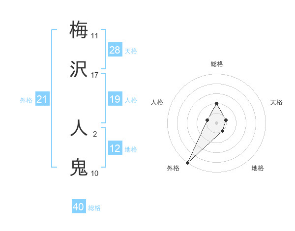 梅沢 人鬼さんを姓名の画数から五運を鑑定
