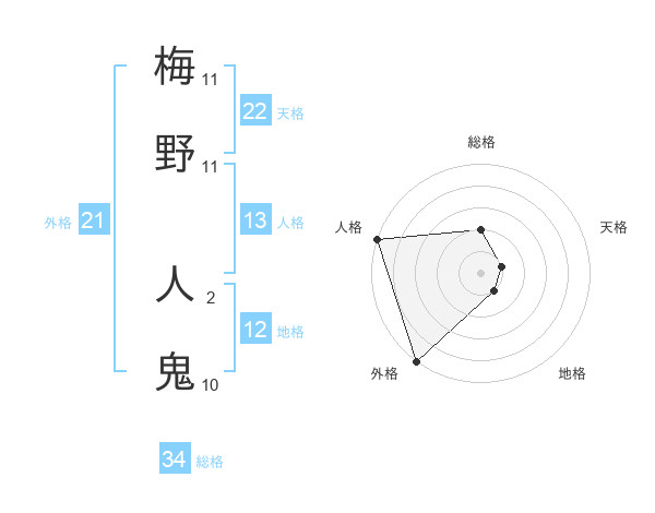 梅野 人鬼さんの外格は21画の5点!