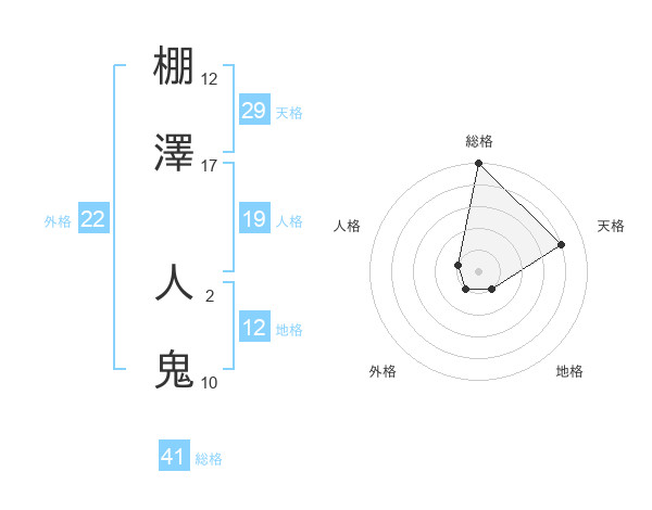 棚澤 人鬼さんの総格は41画の5点!