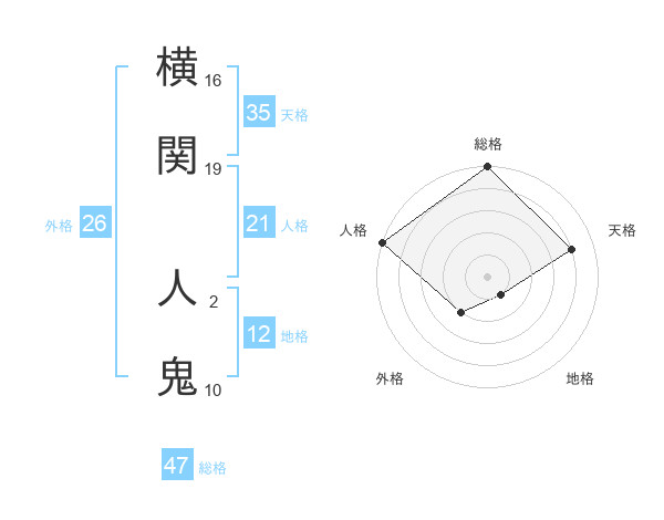 横関 人鬼さんを姓名の画数から五運を鑑定