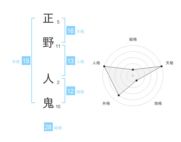 正野 人鬼さんの天格は16画の5点!