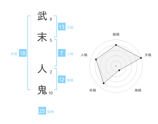 武末 人鬼さんの総格は25画の4点!