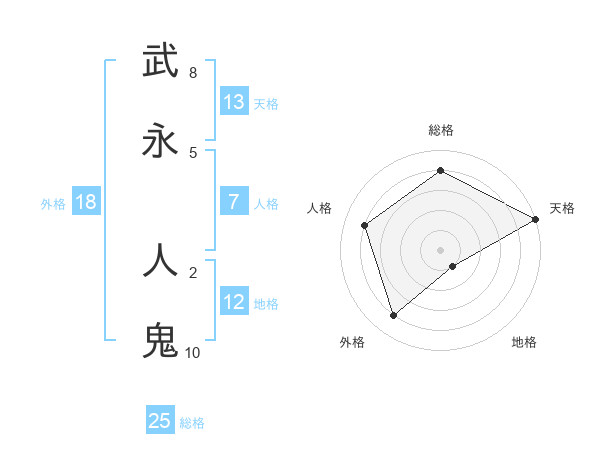 武永 人鬼さんを姓名の画数から五運を鑑定