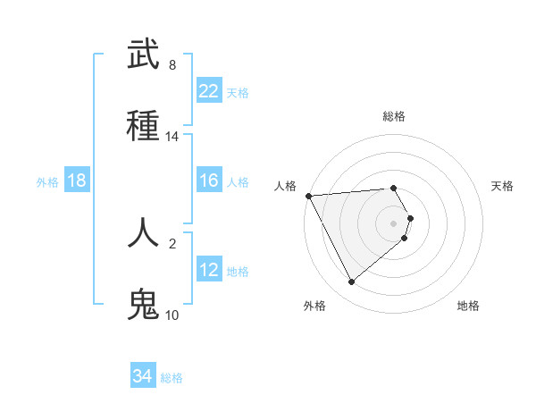 武種 人鬼さんを姓名の画数から五運を鑑定