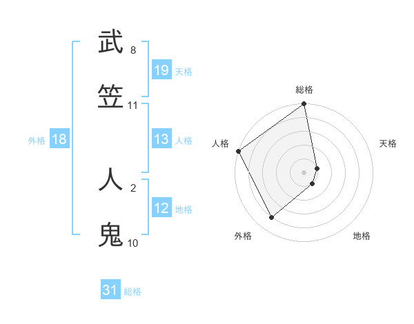 武笠 人鬼さんを姓名の画数から五運を鑑定