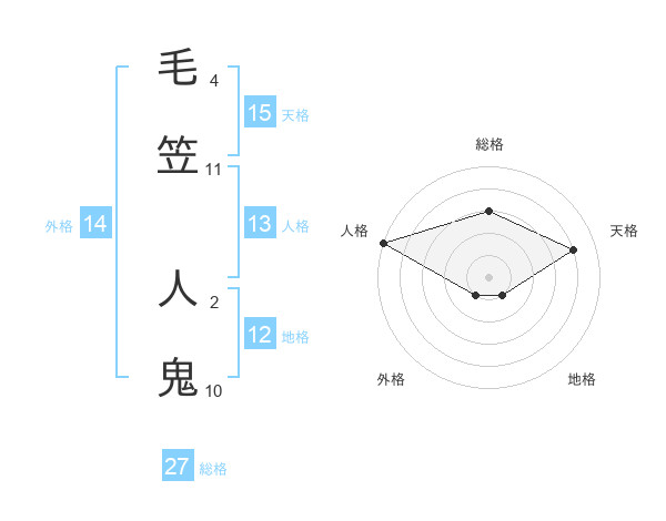 毛笠 人鬼さんを姓名の画数から五運を鑑定