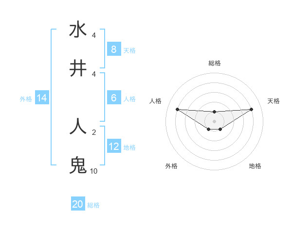 水井 人鬼さんの総格は20画の1点!
