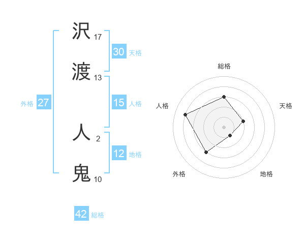 沢渡 人鬼さんの総格は42画の3点!