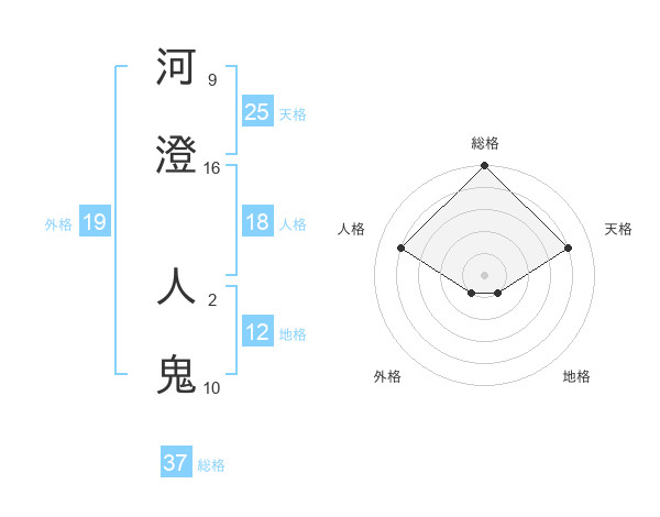 河澄 人鬼さんの総格は37画の5点!