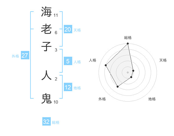 海老子 人鬼さんの総格は32画の5点!
