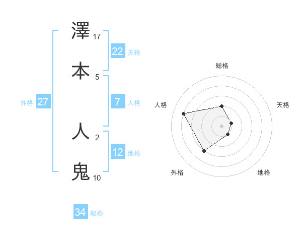 澤本 人鬼さんの総格は34画の2点!