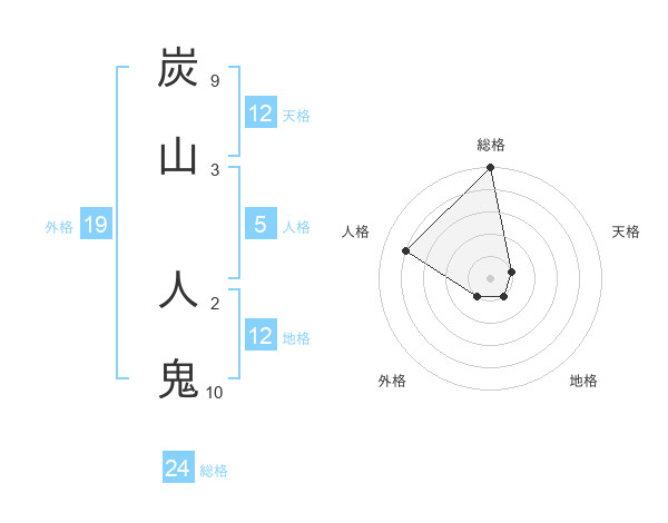 炭山 人鬼さんの総格は24画の5点!