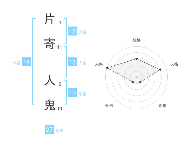 片寄 人鬼さんの天格は15画の4点!