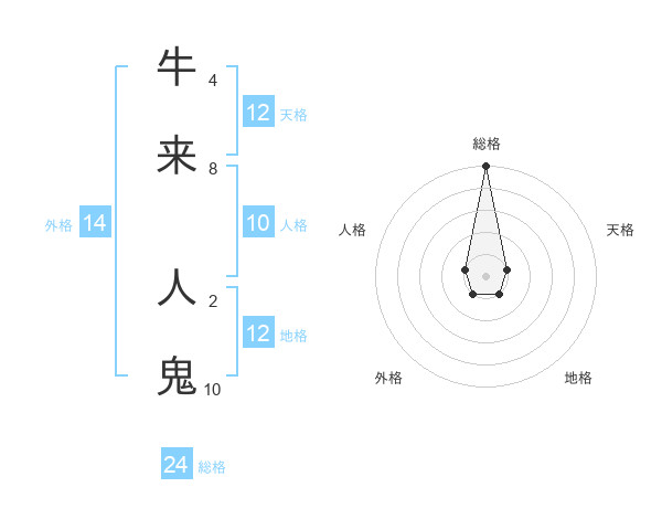 牛来 人鬼さんを姓名の画数から五運を鑑定