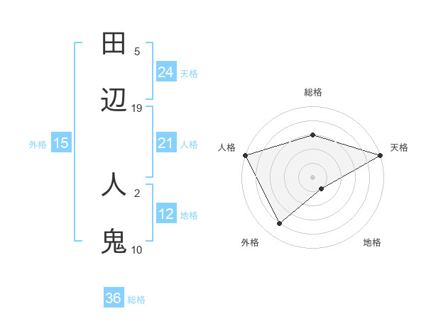 田辺 人鬼さんの天格は24画の5点!