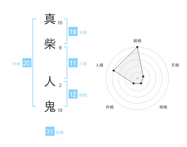 真柴 人鬼さんの総格は31画の5点!