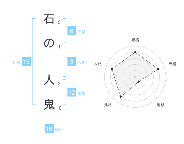 石の 人鬼さんの総格は18画の4点!