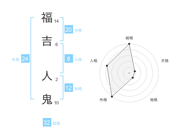 福吉 人鬼さんを姓名の画数から五運を鑑定