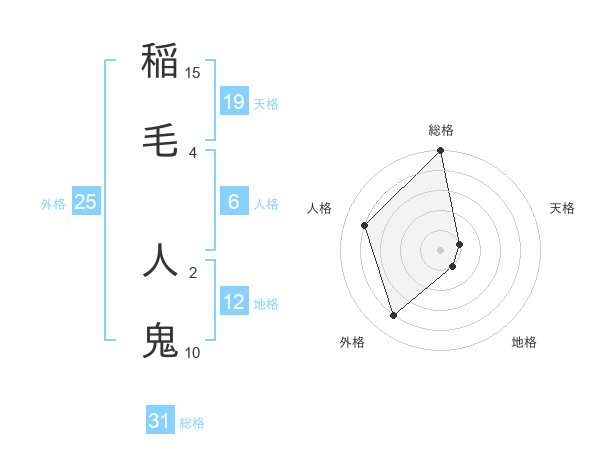 稲毛 人鬼さんの総格は31画の5点!