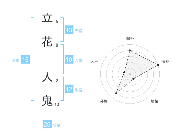 立花 人鬼さんを姓名の画数から五運を鑑定