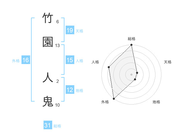 竹園 人鬼さんを姓名の画数から五運を鑑定