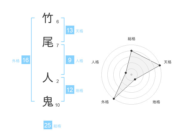 竹尾 人鬼さんを姓名の画数から五運を鑑定