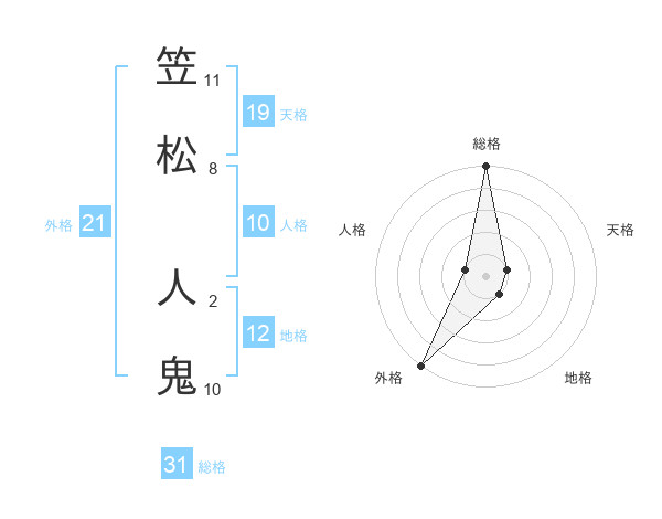 笠松 人鬼さんの総格は31画の5点!