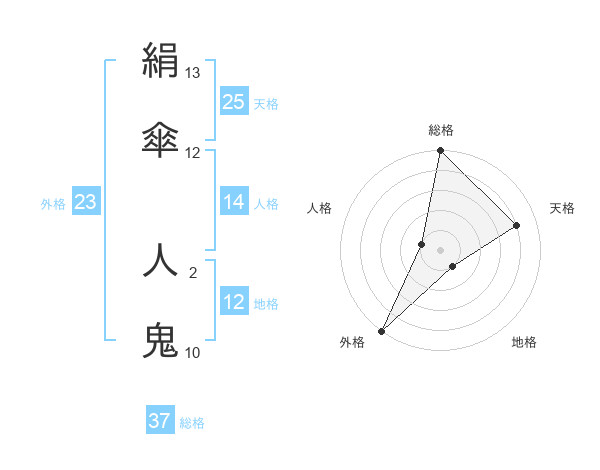 絹傘 人鬼さんを姓名の画数から五運を鑑定