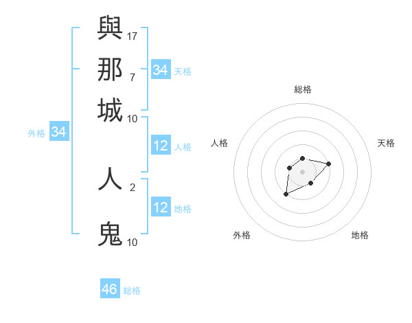 與那城 人鬼さんの外格は34画の2点!
