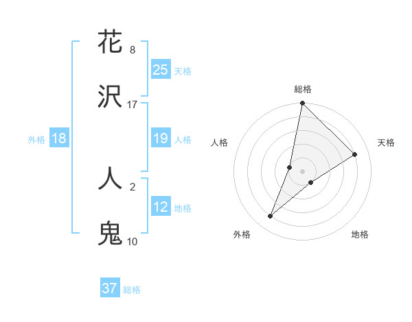 花沢 人鬼さんを姓名の画数から五運を鑑定