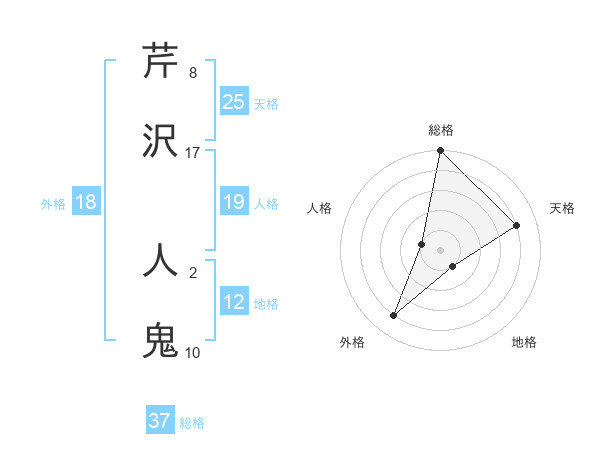 芹沢 人鬼さんを姓名の画数から五運を鑑定