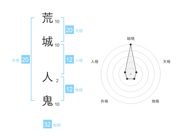 荒城 人鬼さんを姓名の画数から五運を鑑定
