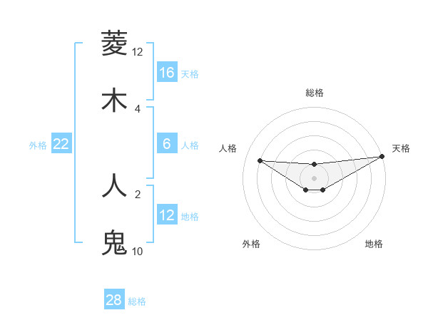 菱木 人鬼さんの外格は22画の1点!