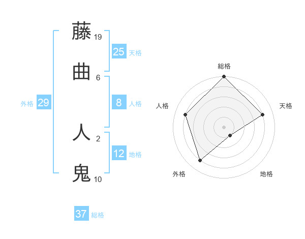 藤曲 人鬼さんの総格は37画の5点!