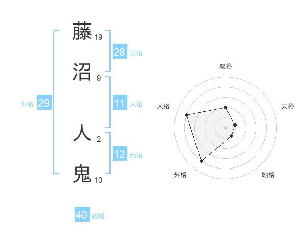 藤沼 人鬼さんを姓名の画数から五運を鑑定