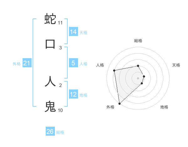 蛇口 人鬼さんを姓名の画数から五運を鑑定