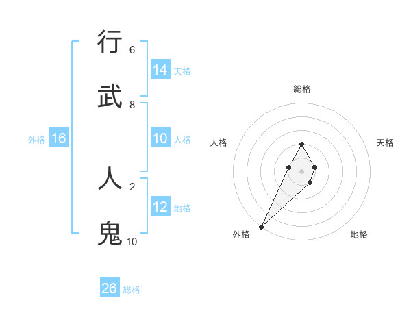 行武 人鬼さんを姓名の画数から五運を鑑定