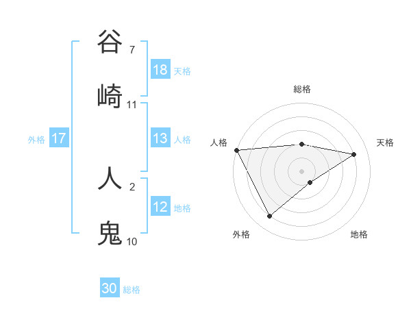 谷崎 人鬼さんの総格は30画の2点!