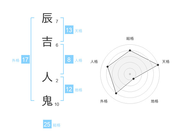 辰吉 人鬼さんを姓名の画数から五運を鑑定
