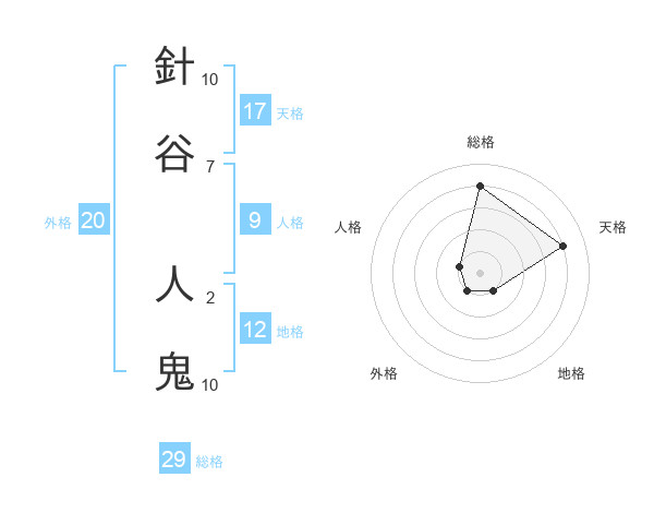 針谷 人鬼さんの総格は29画の4点!