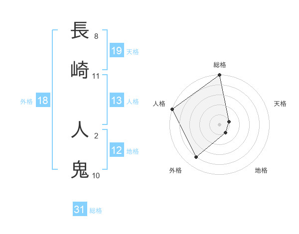 長崎 人鬼さんを姓名の画数から五運を鑑定