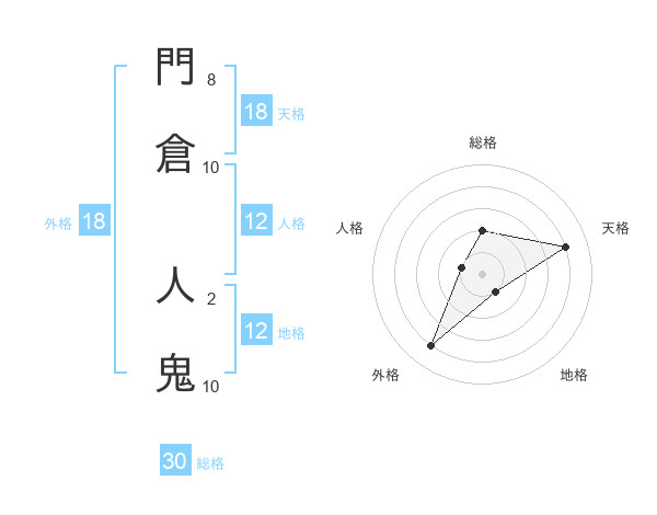 門倉 人鬼さんの総格は30画の2点!
