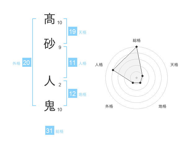 髙砂 人鬼さんの総格は31画の5点!