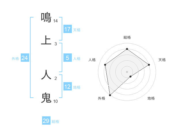 鳴上 人鬼さんの総格は29画の4点!