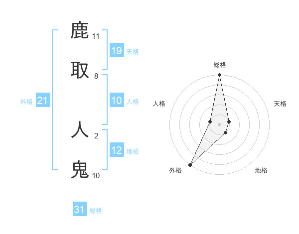 鹿取 人鬼さんの外格は21画の5点!