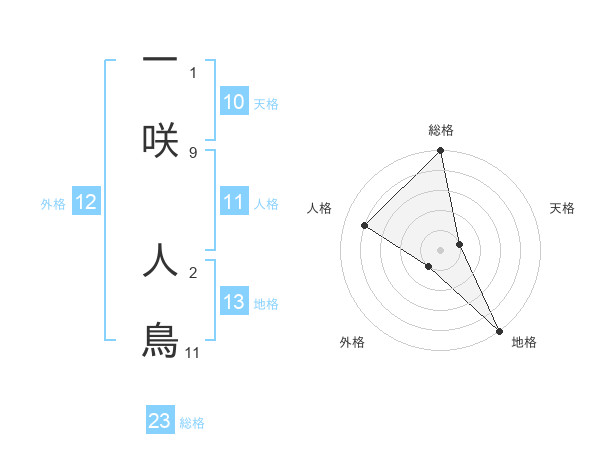 一咲 人鳥さんを姓名の画数から五運を鑑定