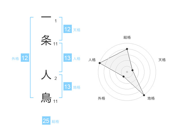 一条 人鳥さんの総格は25画の4点!